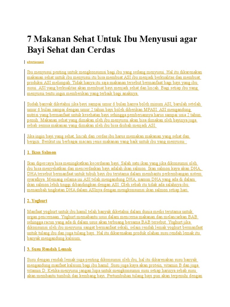 Ibu menyusui disarankan untuk mengonsumsi minimal 2000 kalori per. Ingatlah bahwa apa yang anda konsumsi. Ibu yang menyusui bisa mencampurkan brokoli dengan sayuran hijau yang lainnya agar asi tambah berkualitas. Makanan ibu menyusui agar bayi cerdas dan cepat gemuk. Menyusui tidak hanya sekedar memberikan asi pada sang buah hati. Banyak faktor yang dapat memengaruhi berat badan bayi termasuk kecukupan nutrisi mama ketika menyusui. Meskipun begitu camilan yang dipilih oleh ibu juga harus selektif. Di dalam brokoli banyak mengandung asam folat yang dipercaya bisa mencerdaskan otak bayi.