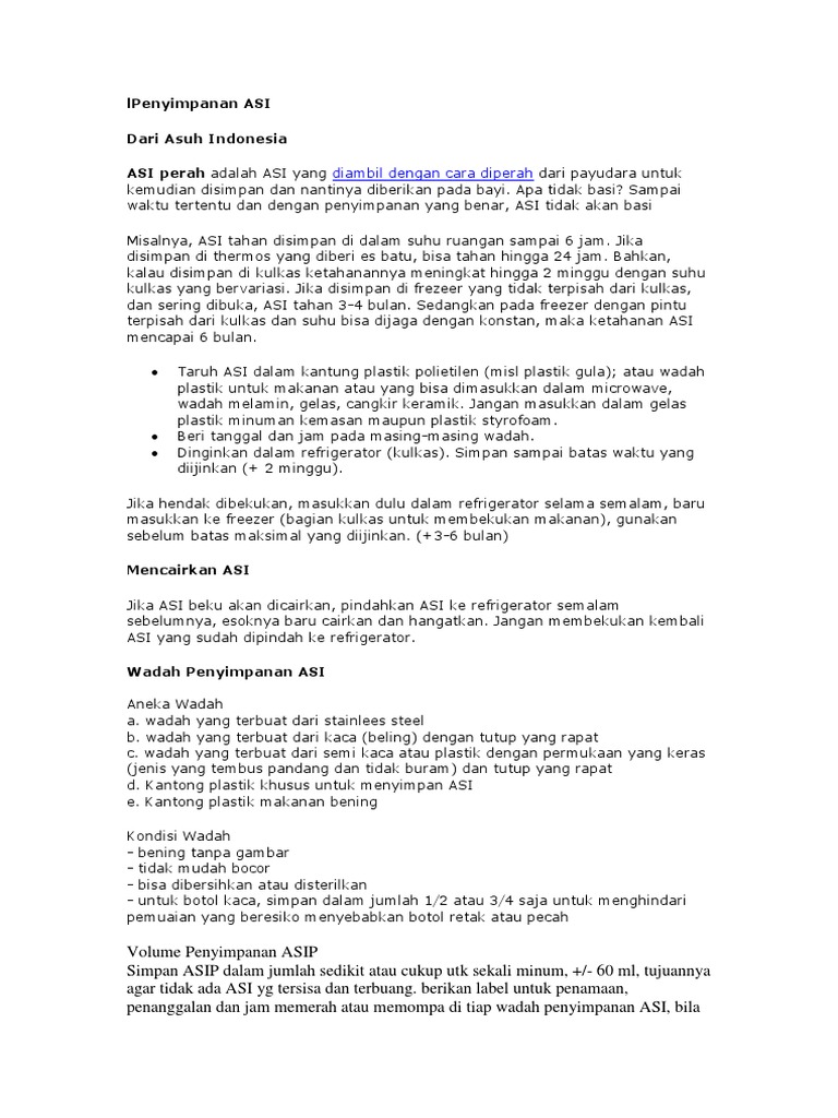 Penyimpanan Asi